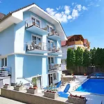 A klímaberendezést biztosító Kek Mediterran Apartman Haz erkélyt és teraszt kínál medencére néző kilátással. A szálláshely továbbá csempe padlóval rendelkezik. Az apartman a kényelem érdekében külön WC-t és zuhanyzót biztosít. Továbbá a fürdőszobában hajszárítót, szárítót és törölközőket talál.